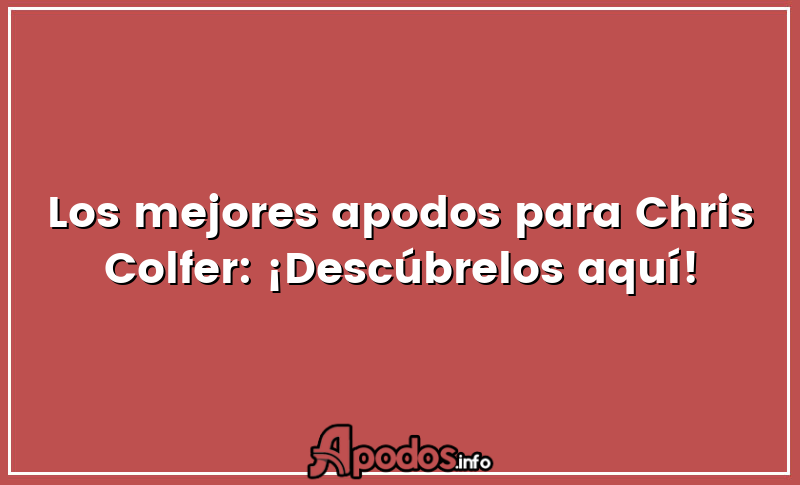 ¡Bienvenidos a apodos.info! En esta ocasión, exploraremos el divertido mundo de los apodos para el talentoso actor Chris Colfer. Descubre las ingeniosas formas en las que sus fans cariñosamente nombran a este artista de reconocida trayectoria en Hollywood. ¡Prepárate para reír y emocionarte con los apodos más creativos!